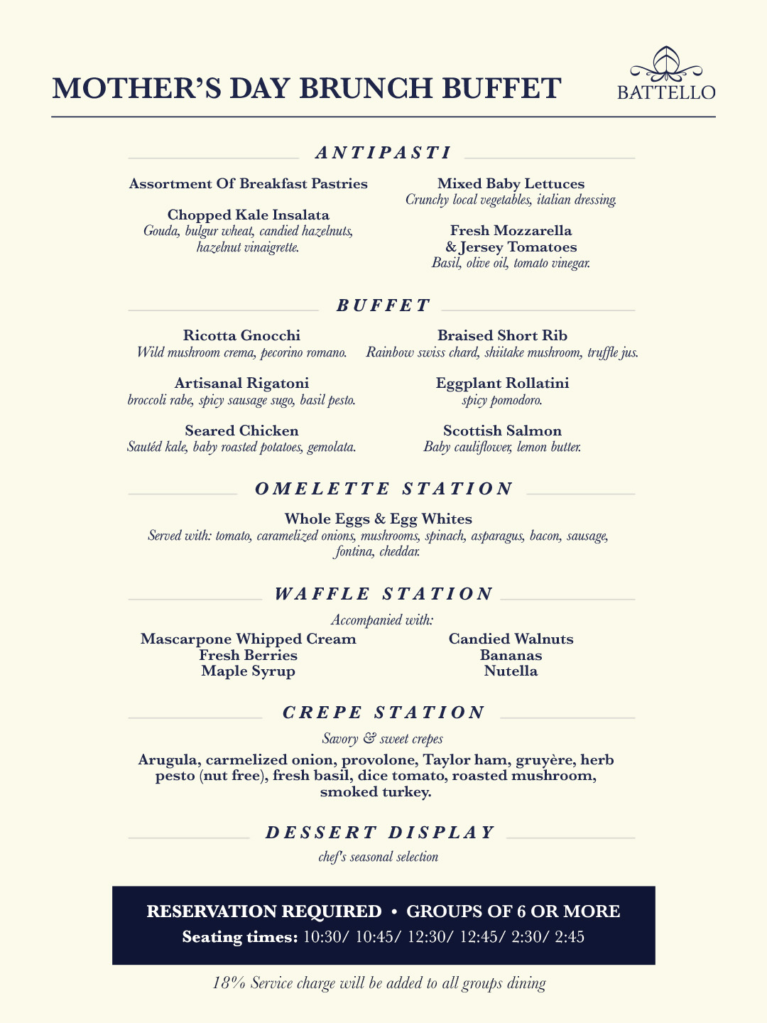 Mother's Day Brunch Buffet Menu